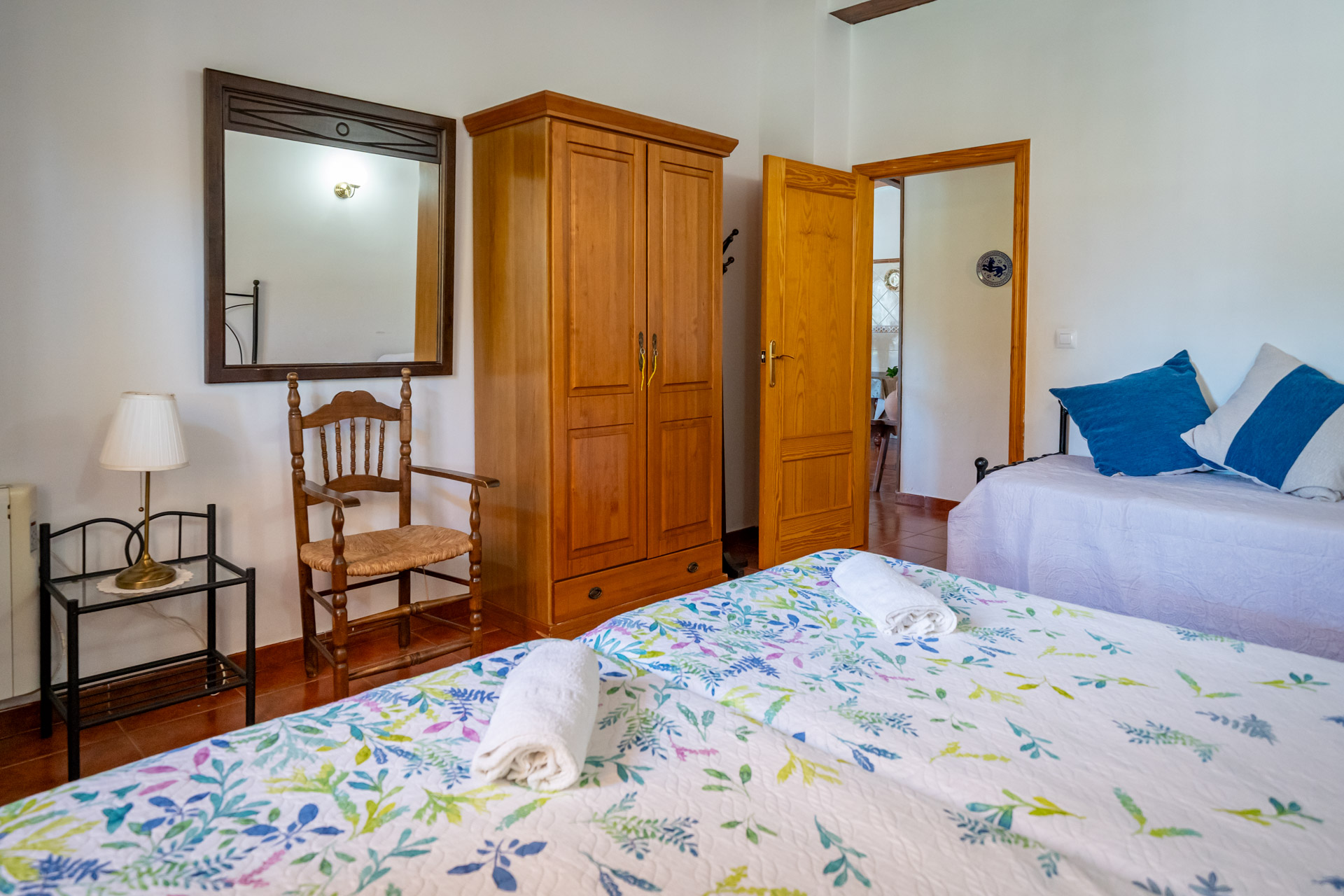 - Cama de matrimonio (150 cm), cama de matrimonio (135 cm), dos camas individuales (105 cm) y dos camas individuales (90 cm)