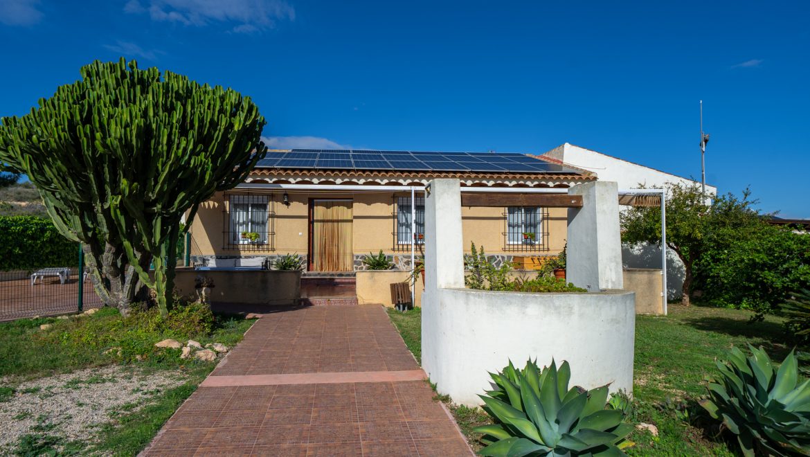 - Barbacoa con encimera, fregador, sombrilla, iluminación y punto de luz
