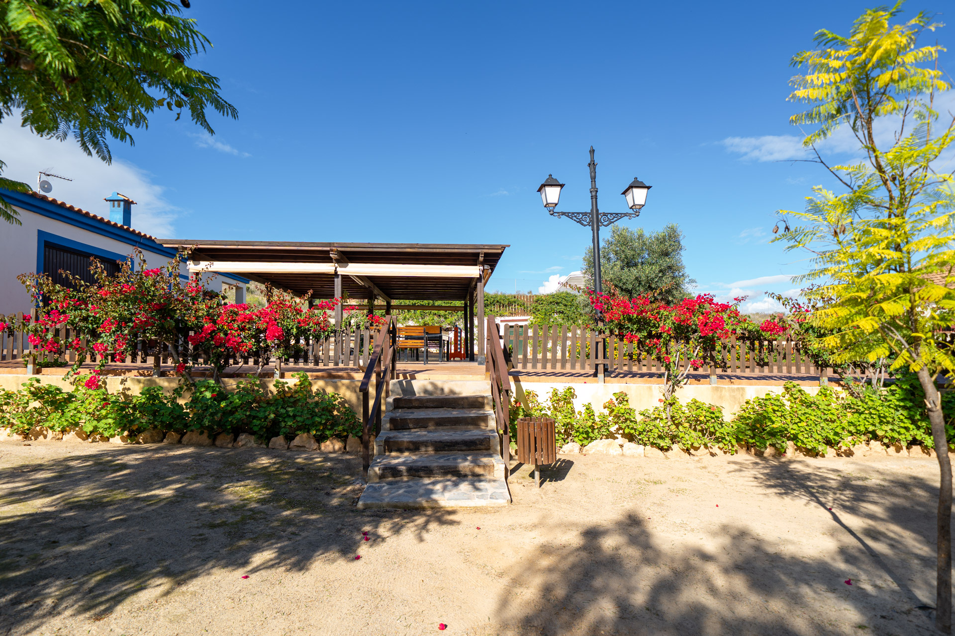 - Pérgola de juegos: Nuestra pérgola de madera es un espacio cubierto para jugar y divertirse.