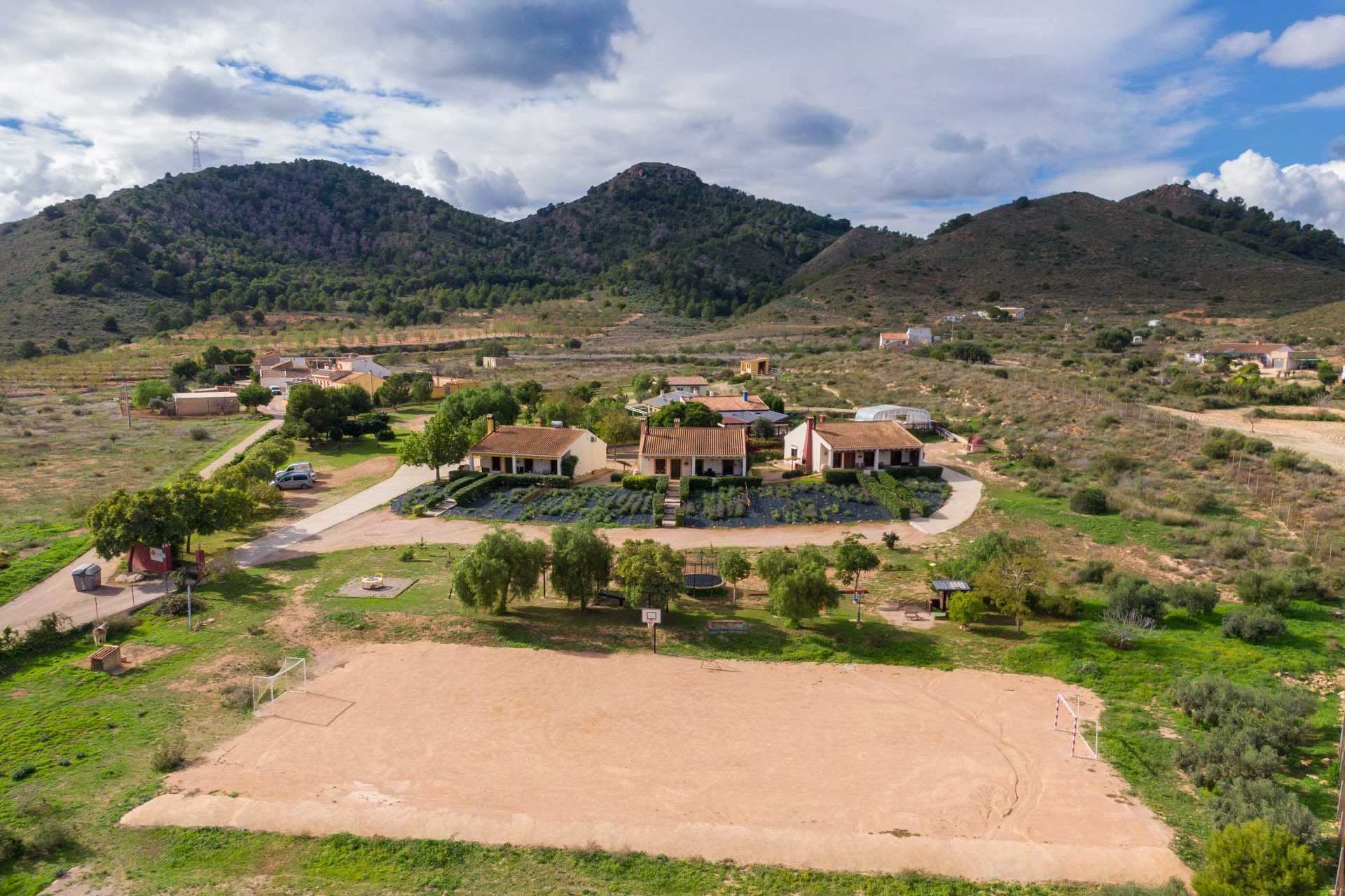 - Campo de futbol y baloncesto: La finca cuenta con un campo de futbol y una canasta de baloncesto.